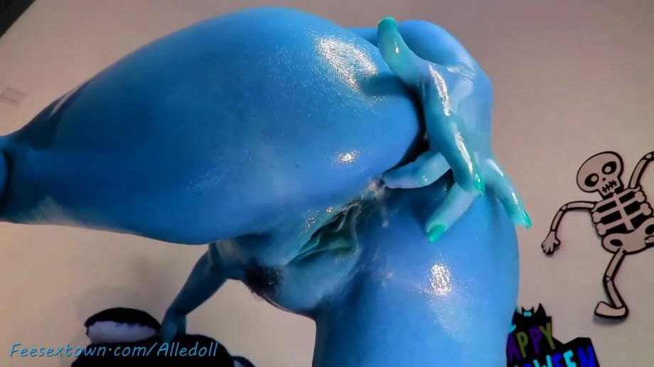 Descrizione: Blueskin camgirl babe with curvy ass and natural big boobs asshole fingering in front of webcam