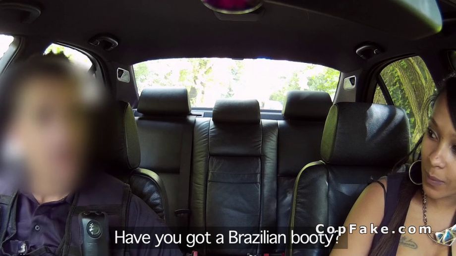 Descrizione : Fake cop searches hot Brazilian babe without id in his vehicle and soon she must sucks his big dick in front seat and then takes his cock from behind lean on bonnet outdoor