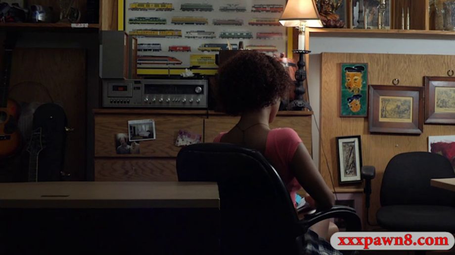 Descrizione: Busty amateur woman with curly hair gets her sweet pussy railed by pawn dude in his office to earn extra money