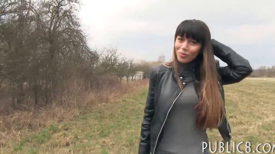 Descrizione: Hot amateur Eurobabe flashes her awesome huge boobs and gets her pussy fucked by pervert stranger dude in the woods