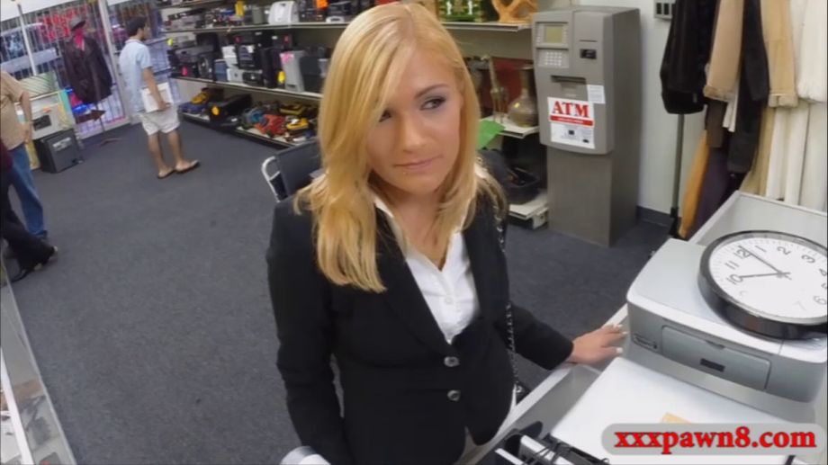 Descrizione : Lovely amateur blonde milf gets convinced to give a blowjob then fucked by the nasty pawnshop owner in storage room to earn a cunhk of cash