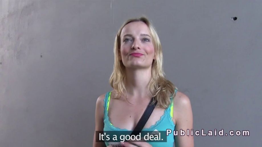 Descrizione: Slim Euro blonde flashing tits for cash outdoor then for more sucking big cock and fucking him in every position possible at old railway