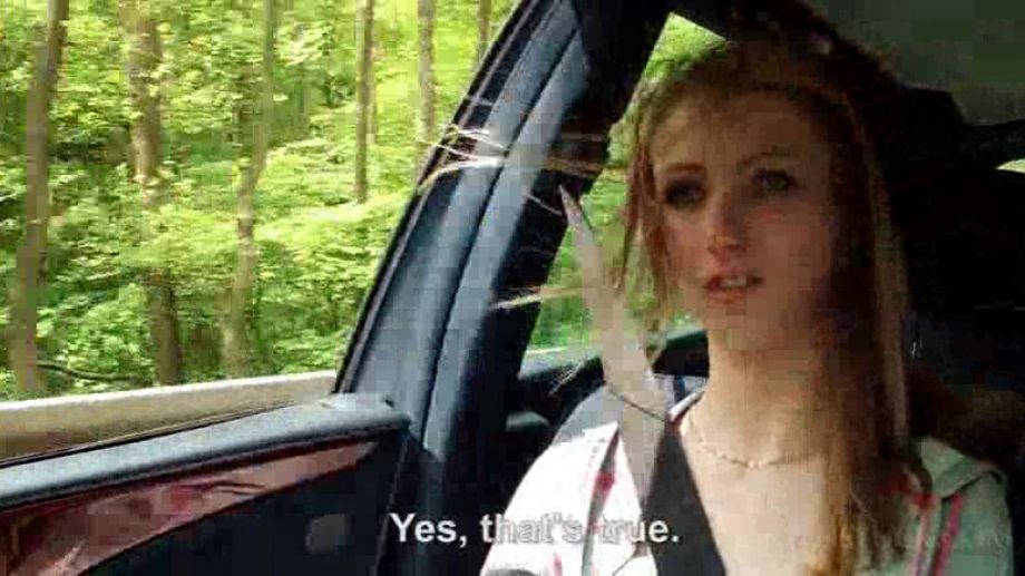 Descrizione: Hitchhiking blonde flashing her boobs and fucking in the car