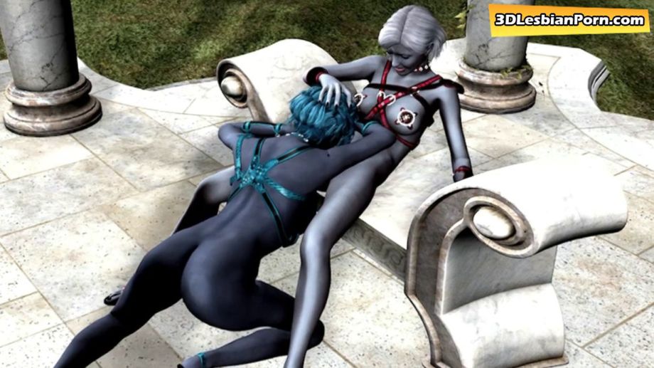 Descrizione: Two guardian lesbians are having sex in a temple in a moonlight