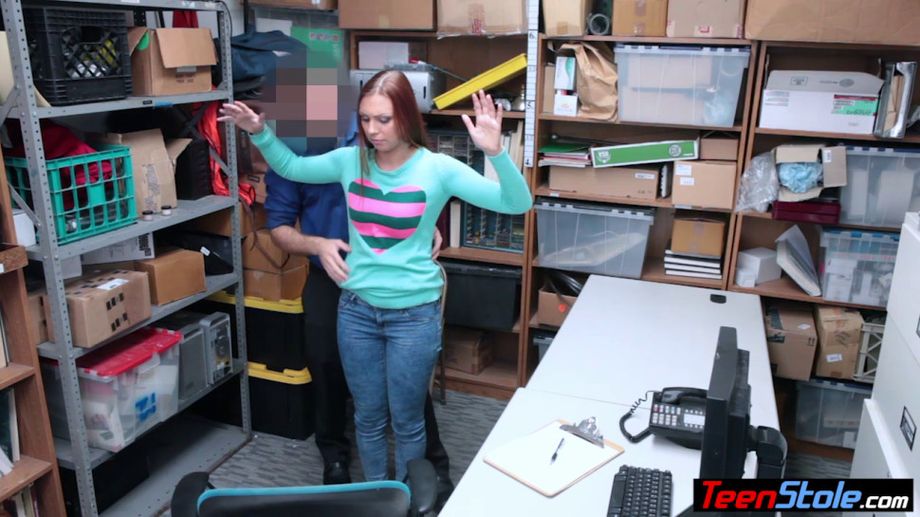 Descrizione: Redhead czech migrant teen Ornella Morgan tried to steal a bracelet but she got caught and she had to fuck a security guard
