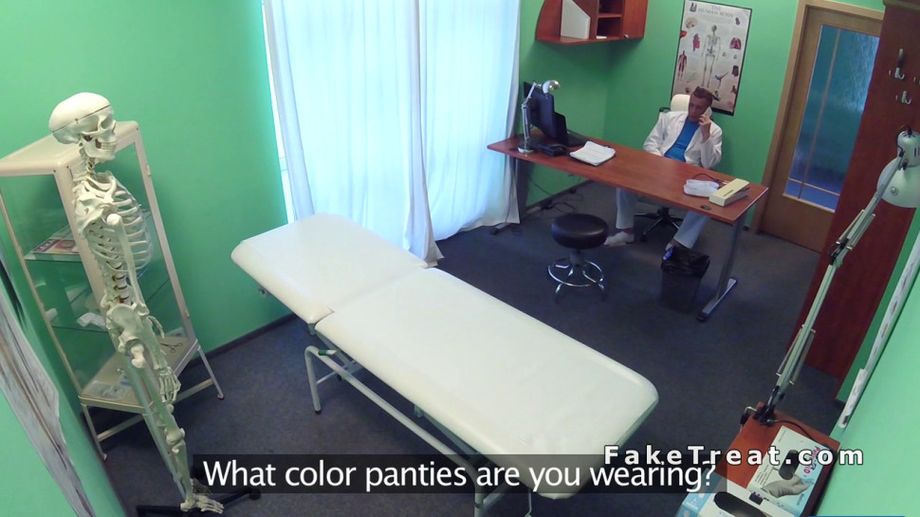 Descrizione : Perv doctor calls his sexy nurse in office beside his in fake hospital and wanks copck while talking with her then she caught him and then sucks and fucks him in his office