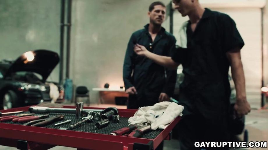 Descrizione : Four mechanics guys are excited about turning the page of their pin-up calendar. Naturally, the conversation turns to sex, and Roman lets Brandon know hes in on his secret, and Brandon realizes his worst fears could come to fruition.