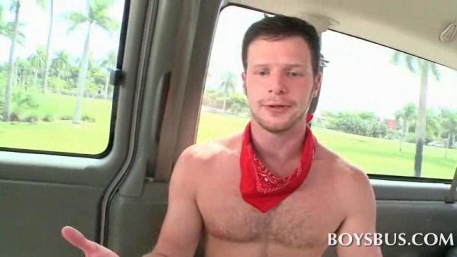 Descrizione: Blonde porn star arousing muscled stud on his boys bus ride