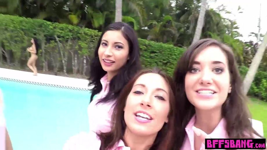 Descrizione : Sorority lesbian teens invited a busty latina newbie to a initiation rite and humiliated her by the pool but the rite turned into hardcore sex
