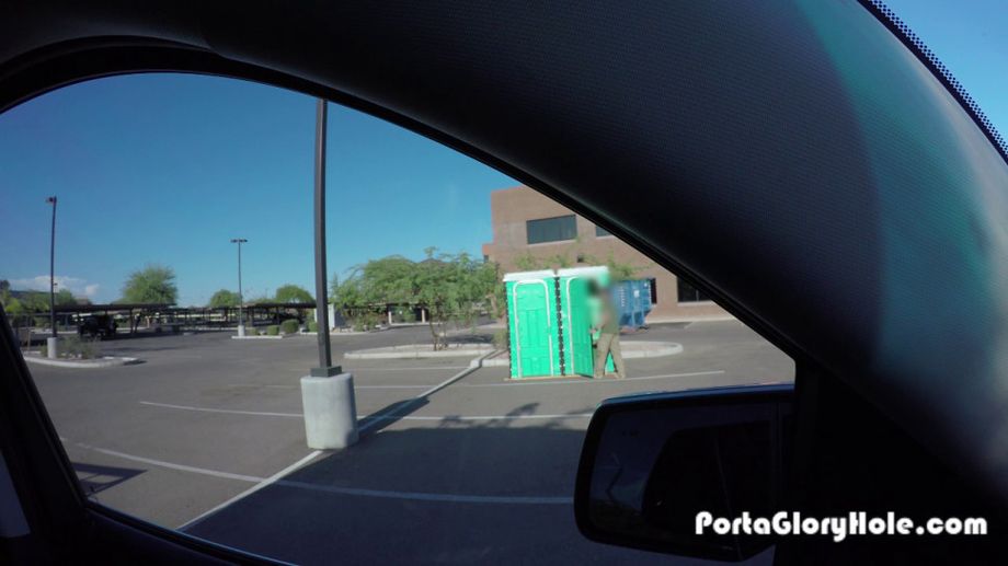 Descrizione: Porta Gloryhole blonde with cuckold waits while she sucks cocks in a public porta poty gloryhole