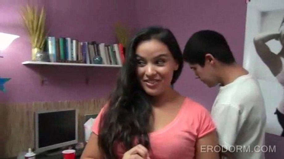 Descriere: Sexy college babes humping and sucking huge dicks in orgy