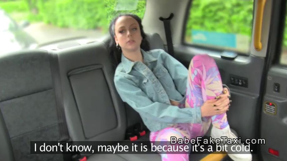 Descriere : Blue haired female fake taxi driver in boots jumps back for sexy petite brunette lesbo in tights and then wears strap on dildo and fucks her in public