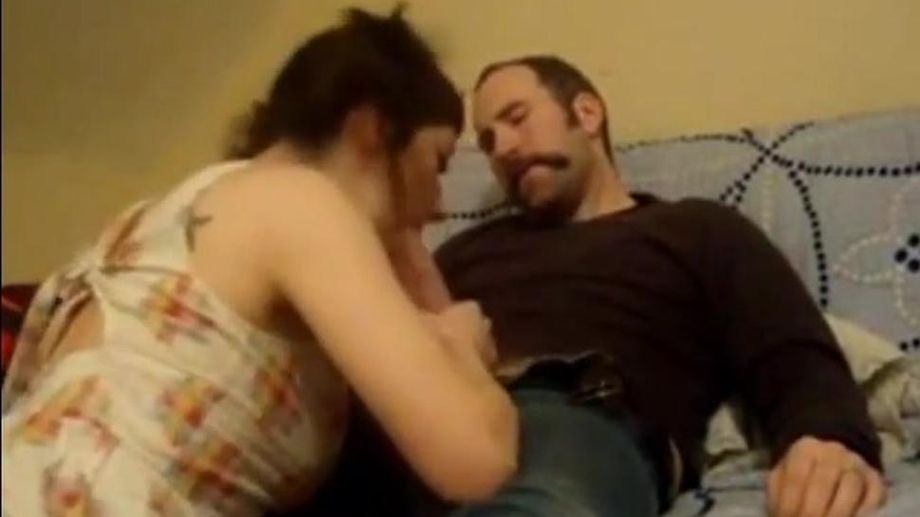 Girl gives her husband a ride and swallow