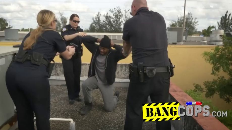 Descriere : Black guy got caught by the cops but once they saw his huge penis they decided why not bang him outside and let him go after he cums on BangCops