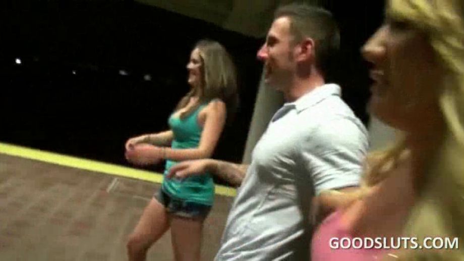 Descriere: Lusty teen babes flashing boobs and pussies in public
