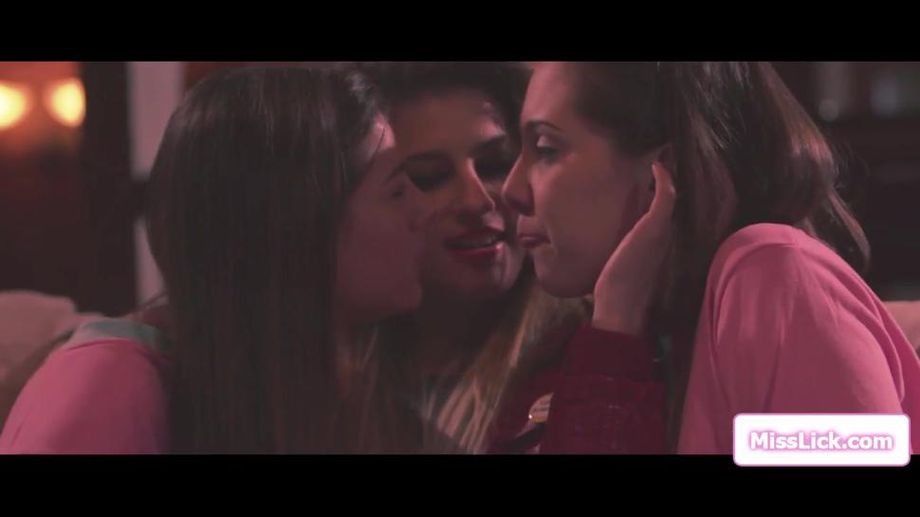 Descriere : Small tits big sis puts on a porn to watch with her petite twin stepsisters.She seduces them and all three kiss each other.She licks the latina who gives oral to the brunette.Then the twins lick and facesit their stepsister with their hairy snatches