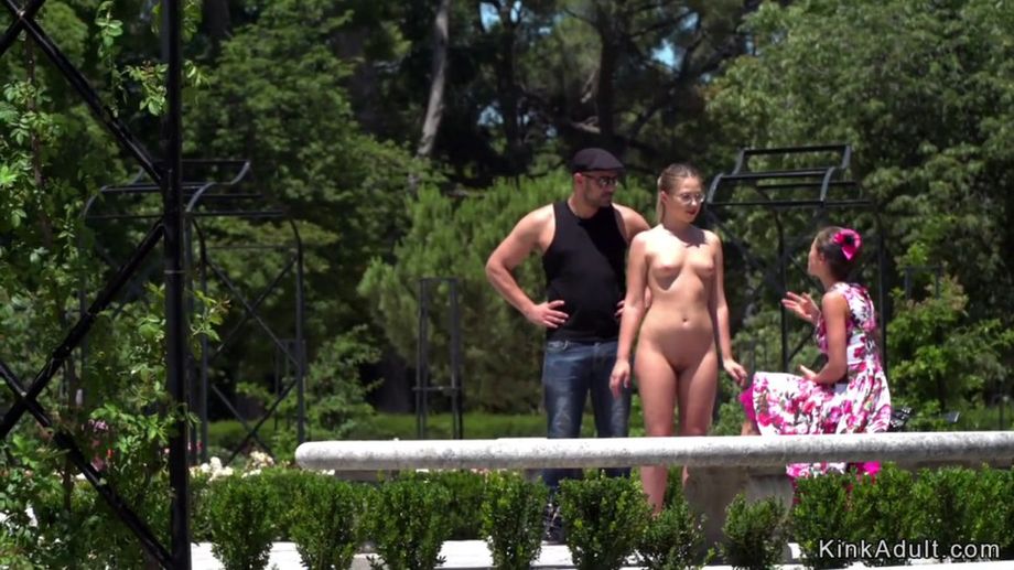 Descriere: Pretty naked blonde slave Selvaggia posing in the streets and in the public park then in some bar she gets anal fucked for the crowd