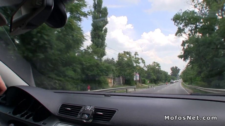 Descriere : Brunette teen hitchhiker takes a ride with couple of swingers and then she grabs big dick to sriver while gf shooting them and he bangs her outdoor
